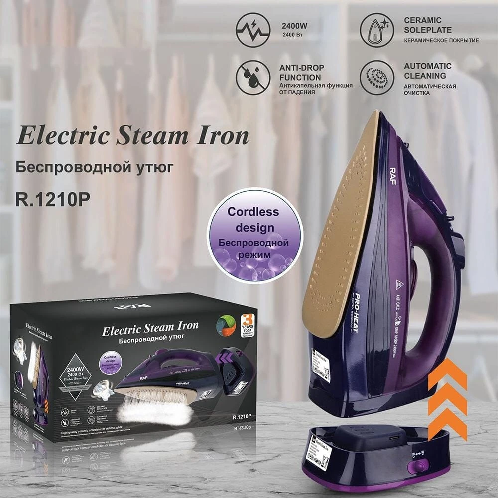 نوع القاعدة: قاعدة سيراميك (Ceramic Soleplate) غير لاصقة ومقاومة للخدش، لضمان انزلاق سلس على كافة أنواع الأقمشة.