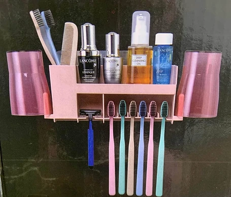 تصميم شامل 4 في 1: يجمع بين حامل فرش الأسنان، حامل ماكينة الحلاقة، رف لمستحضرات التجميل، وأكواب المضمضة في قطعة واحدة.