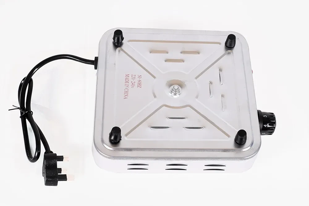 • التحكم: زر تشغيل/إيقاف + منظم حرارة (Thermostat)