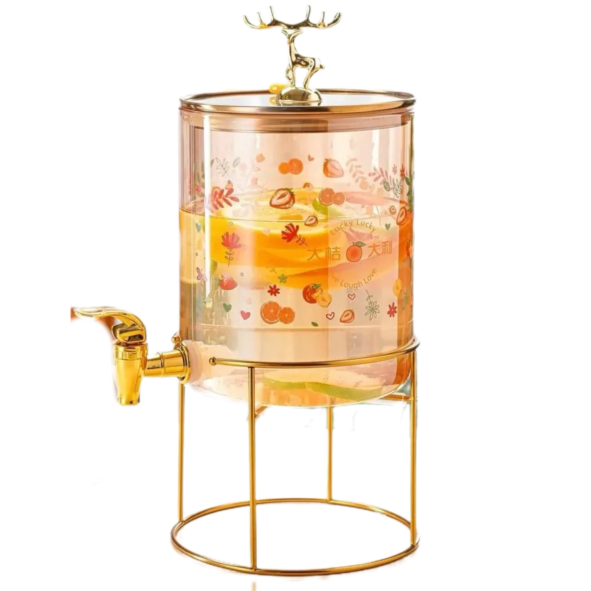 موزع المشروبات الزجاجي الفاخر بتصميم الغزال الذهبي