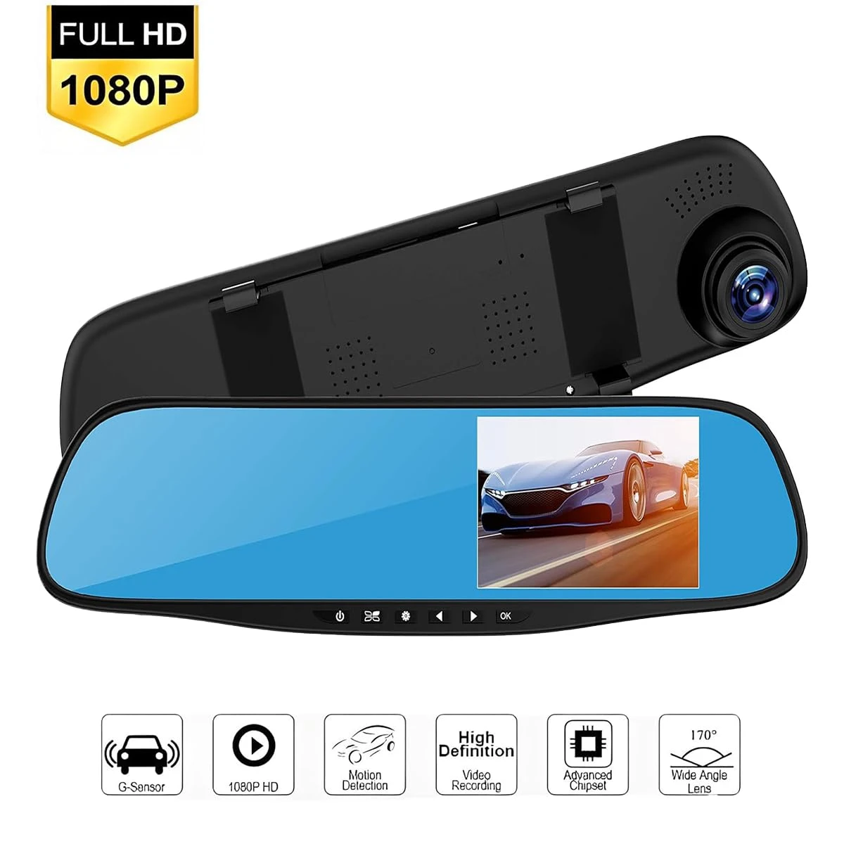 شاشة مدمجة: شاشة عرض داخل المرآة لمتابعة التسجيل مباشرة دون الحاجة لجهاز إضافي.