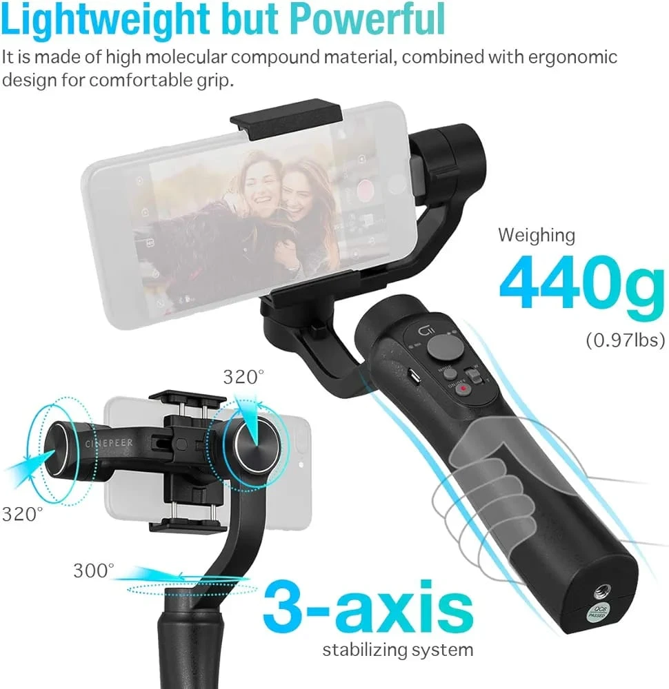✔️ تثبيت ثلاثي المحاور (3-Axis Stabilization): يمنع الاهتزاز ويعطي تصوير ناعم