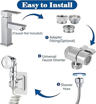 التشغيل: افتح المياه، واستخدم المفتاح الصغير الموجود على المحول للتحويل بين تدفق الماء من "الصنبور لأسفل" أو "الدش للخارج".