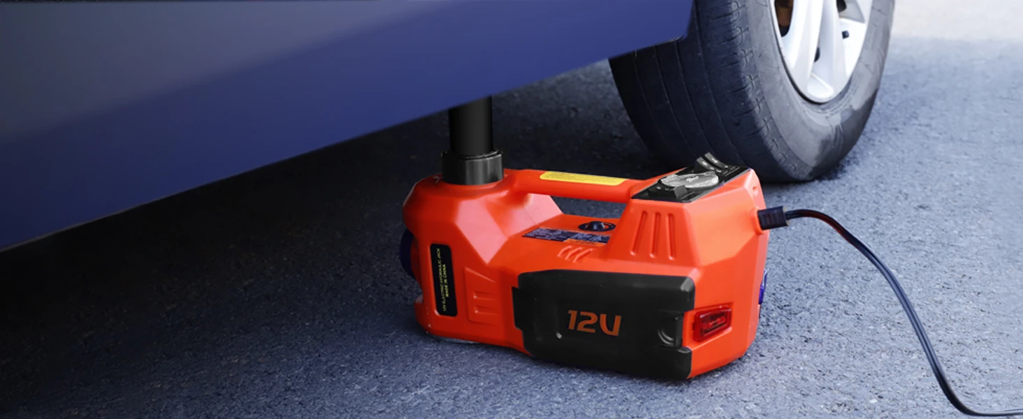 الوظائف المدمجة: (رافعة هيدروليكية، منفاخ إطارات، كشاف LED للإضاءة، ومطرقة طوارئ).