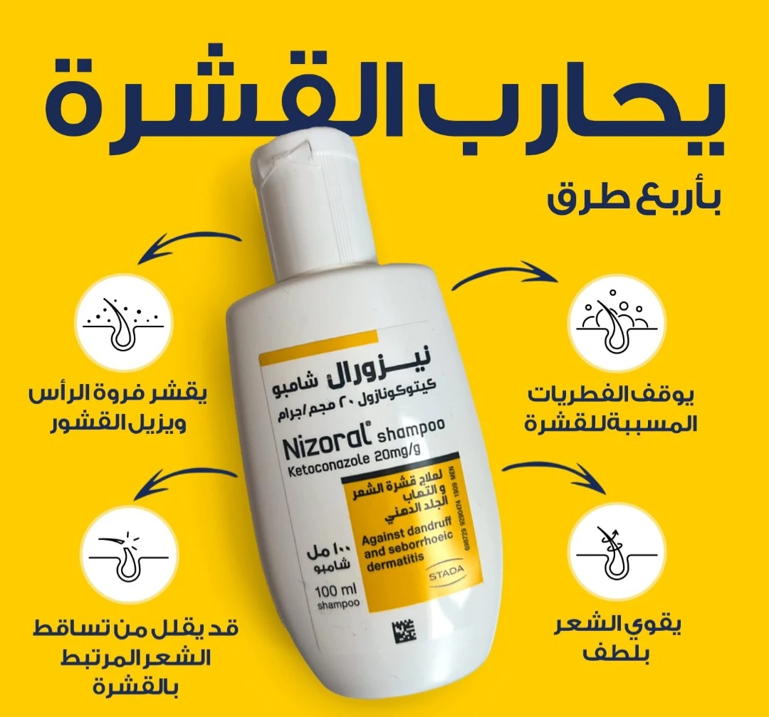 *شامبو نيزورال (Nizoral) شامبو طبي يحتوي على مادةكيتوكونازول (Ketoconazole 20mg/g)،* *يُستخدم لعلاج قشرة الرأس والتهاب الجلد الدهني* *(Seborrheic Dermatitis) والفطريات التي تصيب فروة الرأس*