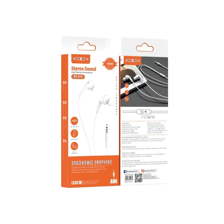 تجمع سماعة MX-EP71 من شركة MOXOM بين الأداء الصوتي العالي والراحة المثالية، فهي مصممة خصيصاً لتناسب نمط حياتك اليومي، سواء كنت تجري مكالمات عمل أو تستمتع بموسيقاك المفضلة.
