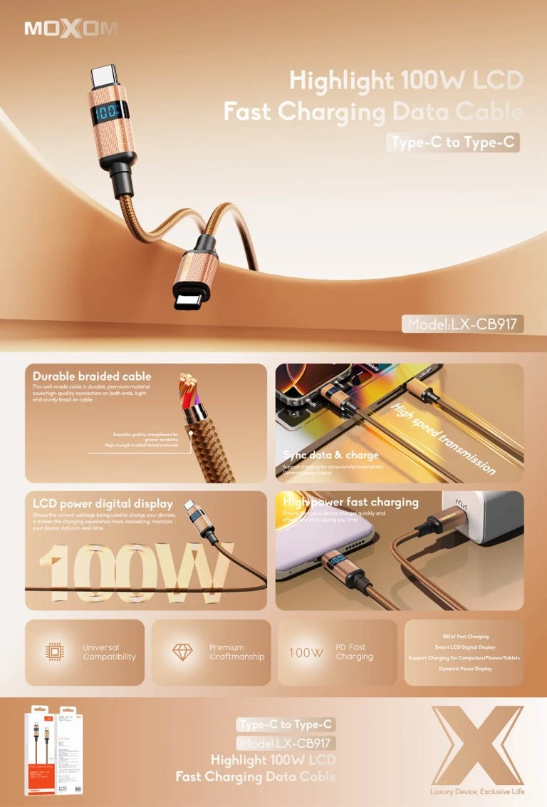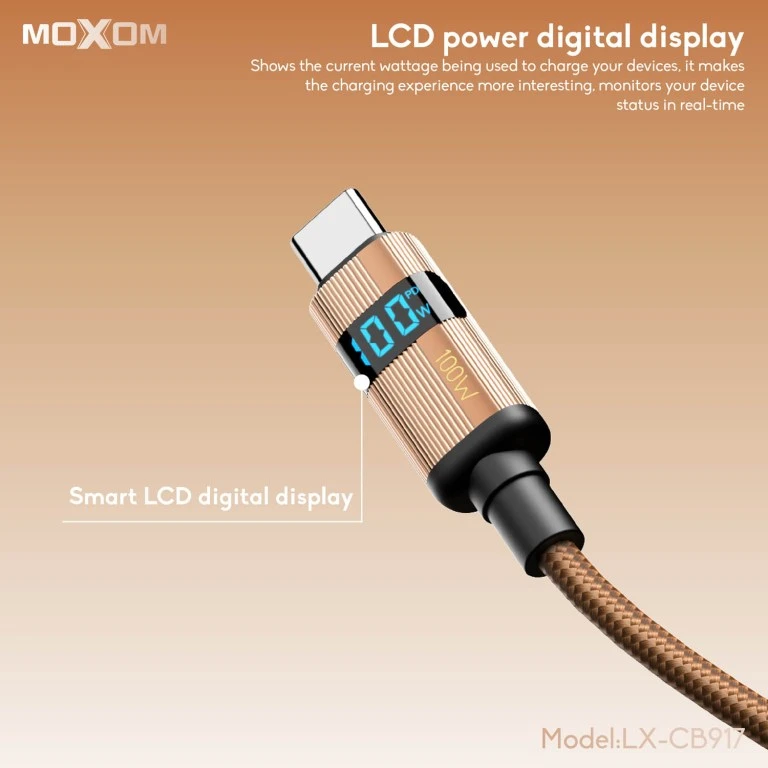 كابل البيانات MOXOM LX-CB917 - قوة 100 واط مع شاشة عرض ذكية