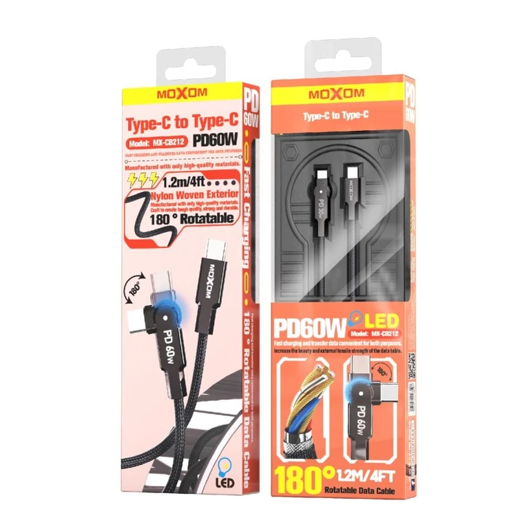 يعتبر كابل MOXOM MX-CB212 الحل المثالي للمستخدمين الذين يبحثون عن المتانة والعملية، بفضل تصميمه المبتكر الذي يجمع بين تقنية الشحن السريع والمرونة الفائقة.